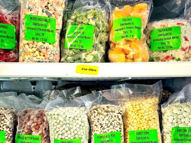 Vegetables that have been frozen at their peak of freshness, with portions large enough for a meal! Small selection of meats available as well.