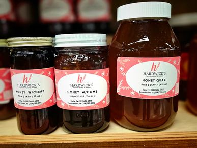 We have local honey, jams, jellies, seasonings, hot sauce and more, all with so many different flavors, from sweet to savory and even some spicy! Come see our selection!
